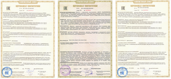 Все товары имеют сертификаты качества и совершенно безопасны для новорожденных.