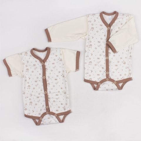 "Комплект боди коллекции ""Тики Там"". Боди имеют застежку на кнопки спереди и снизу для смены памперса. Одно боди - с длинным рукавом, второе - в коротким для разной погоды.