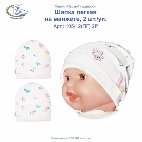 Шапочка легкая с отворотом, 2шт/уп, арт.105/12(ПГ)-2 Р