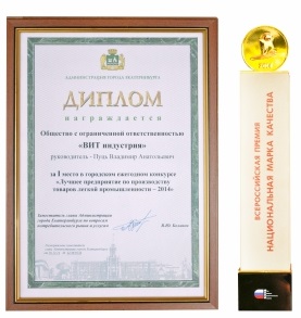 2013 | Золотая медаль и 1 место в конкурсе и 1 место в конкурсе «За высокие потребительские свойства товаров» | Золотая медаль Национального бизнес-рейтинга «Лидер России-2013» | |