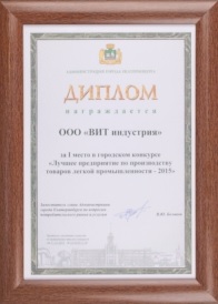 | I место в городском конкурсе «Лучшее предприятие по производству товаров легкой промышленности» | |